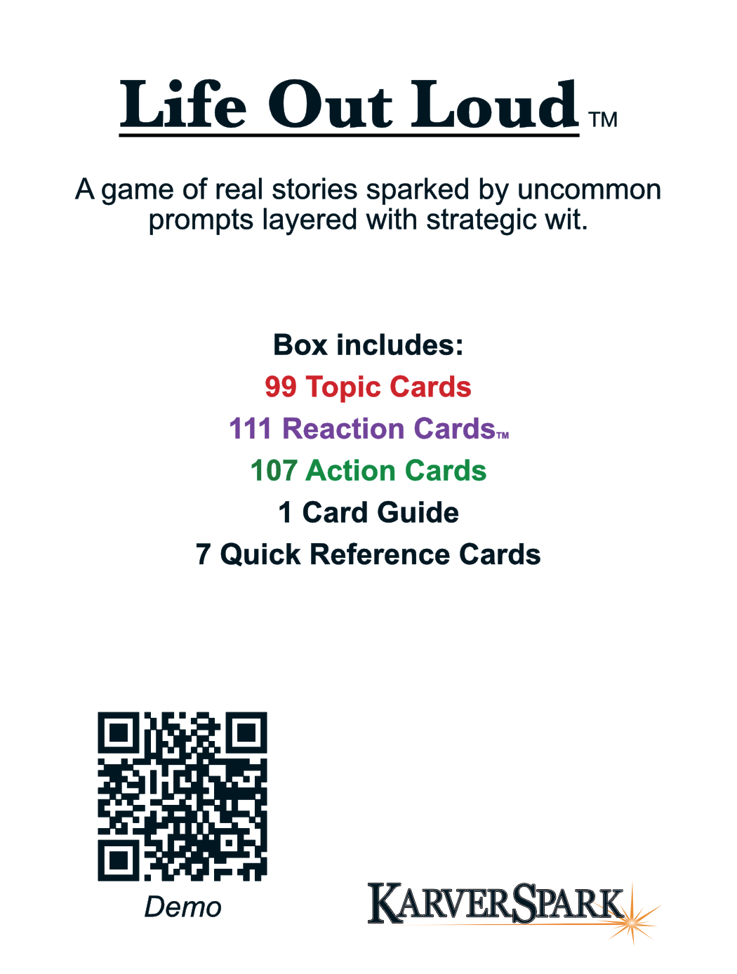 - WHO WILL LOVE IT: Perfect for 3-8 players (or up to 16 players in co-op mode) Ages 17+ (because life experiences are needed). It’s a game for all people; the ones with unplanned trips, surprising encounters, impulsive decisions and maddening misfortunes. Life Out Loud proves that everyone’s life has unforgettable stories worth telling.
