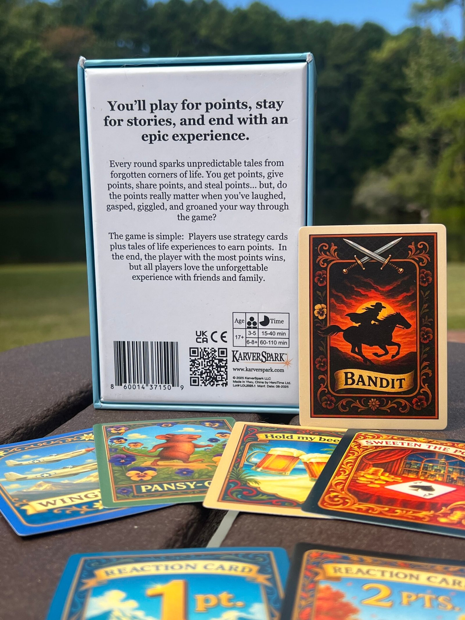 The game is simple: Players use strategy cards plus tales of life experiences to earn points. In the end, the player with the most points wins, but all players love the unforgettable experience with friends and family.
